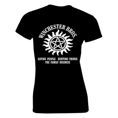 Crown Designs Winchester Brothers Horror Teen Fiction TV Show Inspired Gift for Women & Teenagers Fitted T Shirts Tops Black/XXL 14/16