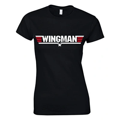 Crown Designs Wingman Action Movie Film Inspired Gift for Women & Teenagers Fitted T Shirts Tops Black/L 10/12