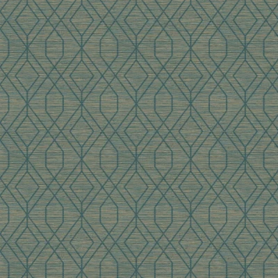 A geometric diamond print pattern atop a faux grasscloth effect, creating a contemporary feel. Seen here in the Teal colourway.