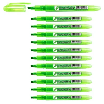 CROWN H 500 Highlighter Pens Chisel Tip Slim Highlighters Pack Of 12 With Bright Fluorescent Ink Green