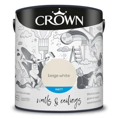 JoybuyCrown Matt Emulsion Beige White 2.5L delivers a modern, matt finish for walls and ceilings with a thick, creamy, easy-to-apply texture. Featuring a 99% solvent-free, Vegan Verified formula in 100% recycled packaging, it creates a healthier home environment while offering excellent coverage and minimal surface shine.