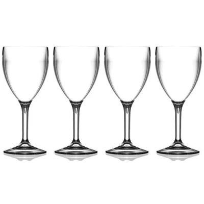 Crown Supplies Clear Wine Glass Reusable Polycarbonate Plastic Virtually Unbreakable 312ml / 11oz Pack of 4