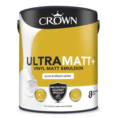 Crown Ultra Matt+ Pure Brilliant White Vinyl Matt Emulsion Mould Protection Paint 10L