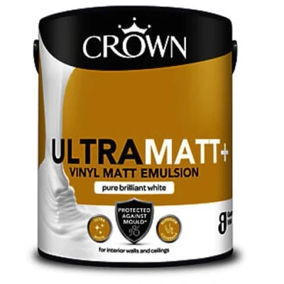 Crown Ultra Matt+ Pure Brilliant White Vinyl Matt Emulsion Mould Protection Paint 2.5L