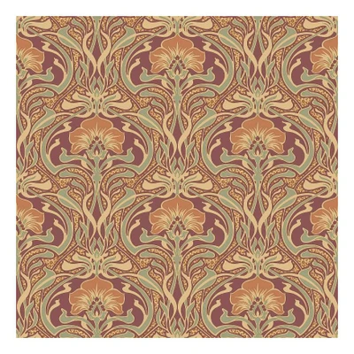 WallpaperDirectInspired by Art Nouveau design this all over pattern with delicate lines and fine floral sprigs in the background is a an instant country classic. Shown in the classic russet colourway, with red, orange and green with gold metallic detail.