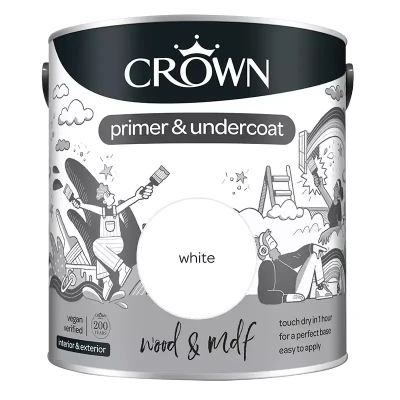 Crown Wood and MDF Primer Undercoat, White (2.5 Liters)