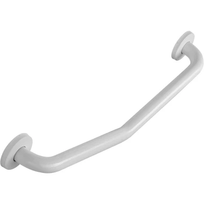 Crafted with a sleek, white stainless steel finish, the grab bar is not only functional but also aesthetically pleasing, proving that assistive accessories can blend beautifully with modern bathroom settings. The angled design provides support for both the hand and forearm, offering added ease when standing or sitting. This feature makes it particularly beneficial in wet areas, where stability is paramount.