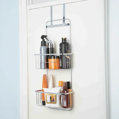 Croydex Bathroom Accessory Hook Over Door Double Storage Basket, Shelves with 2 Fixing Options, Chrome Storage, 5 Year Rust Free Guarantee, H710 x W243 D130mm
