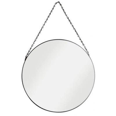 General description The Croydex Round Hanging Mirror with Black Chain and Frame is an elegant centerpiece for any room. Made from high-quality, durable steel, this mirror features a subtle matt black finish that seamlessly blends with various room décors. The generous mirror face adds both style and practicality, while the safety back ensures added security. Technical specifications Dimensions: 38 x 38 cm Material: Durable steel frame with powder-coated matt black finish Includes safety backing Compatibility and accessories To be hung on the wall using the included metal chain Ancillary keyhole fixing on the rear of the mirror Other information