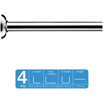 You can easily configure the curtain rod to suit your specific shower dimensions with the following options: