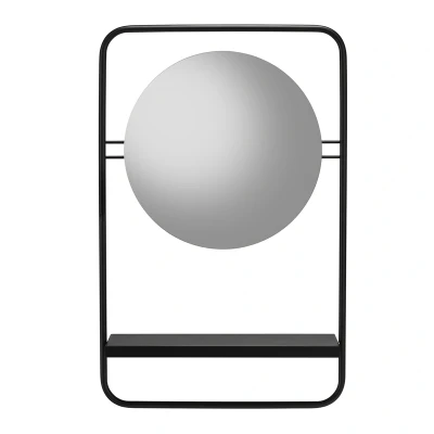 The Croydex Furzton Round Shelf Storage Mirror in black (41.3x64.2cm) features a contemporary matt black steel frame with an integrated shelf, offering stylish storage for any room. Easy to install and maintenance-free, it's perfect for adding modern elegance and functionality to your living space.