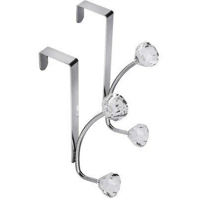 Croydex Jewel Over Door Hook Pack of 2 Stylish Acrylic Design Coat Hooks for Door, Rust Resistant Hanger with 5 Year Guarantee, Easy to Install Hook, Holds up 2kg, Chrome Plated Steel