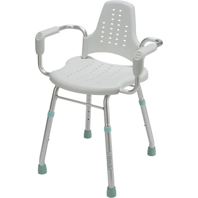 General description The Croydex Shower Seat with Arms is a stylish and functional addition to any bathroom, providing essential support and stability for users who require assistance. Designed for in-shower use, this modern white seat is crafted from rust-free materials and features slip-resistant feet, ensuring safety and comfort during use. The seat is height adjustable and includes a large sitting area with integrated back and arm rests for added comfort. Technical specifications Height adjustable from 410 - 560 mm Weight capacity: up to 190 kg / 420 lbs / 30 st Material: Rust-free construction Slip-resistant rubber feet Sturdy yet lightweight design Other information
