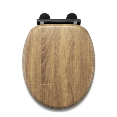 The Croydex Flexi-Fix Wooden Toilet Seat Ontario with black hinges features a soft-close mechanism, quick-release antibacterial seat, and adjustable Flexi-Fix™ hinges for easy, secure installation on all standard UK toilet pans. Made from sustainably sourced moulded wood with a natural teak effect finish.