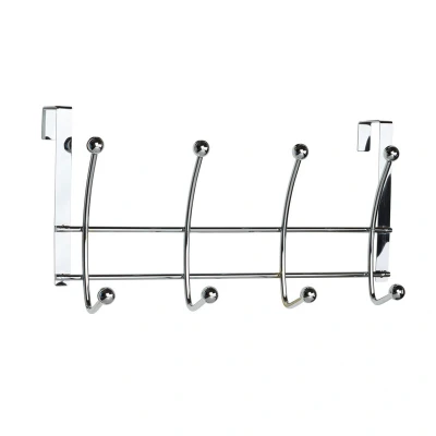 Croydex Over Door Multi Robe Hook Coat Hooks for Door, Easy Install Hanger, Durable Chrome Plated Hook, Fits up to 40mm Doors, 4 Hooks, 19x38x7.5cm, Rust Free 5 Year Guarantee