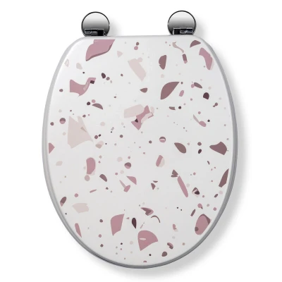 Croydex Pink Terrazzo Print Toilet Seat with Flexi Fix Hinges Sustainable Wooden Antibacterial Treatment and Fits All Standard UK Pans Trendy Durable Bathroom Decor