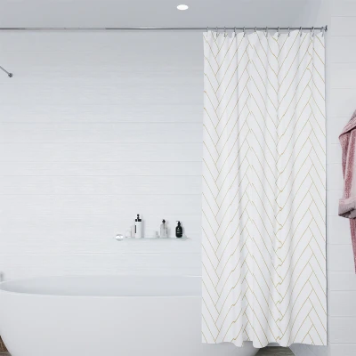 General description Introducing the Croydex Waterproof Shower Curtain, featuring a stunning gold chevron pattern on a white background. This fabric curtain is perfect for any bathroom, measuring 180 x 180cm in size and suitable for use in a shower. The curtain is made of polyester material and boasts a range of features, including reinforced hook holes, waterproofing, and machine washability. The art deco style and elegant design of the curtain make it a great addition to any bathroom, while the weight of only 370g ensures it is easy to install and maintain. Upgrade your bathroom with this stylish and practical shower curtain from Croydex. Technical specifications Dimensions: 180 x 180 cm Weight: 370 g Material: 100% polyester Features: Waterproof, machine washable, reinforced hook holes, twelve corrosion-resistant metal eyelets Usage This elegant white shower curtain enhances your bathroom decor while providing full coverage to keep your bathroom floor dry and spotless. The weighted