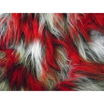 CRS VENDOR LTD. LONG Pile Fun Faux Fur Fabric Material BLACK/WHITE/RED MIX
