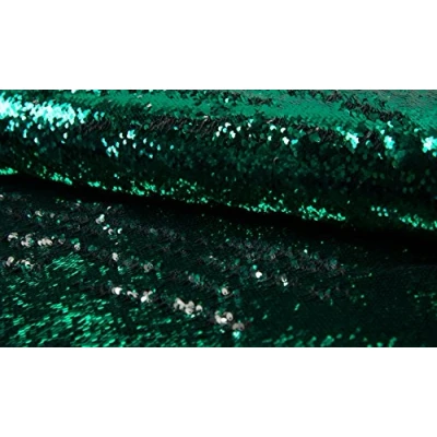 CRS VENDOR LTD. Two Toned Mermaid Fish Scale Sequin Fabric Material GREEN SILVER