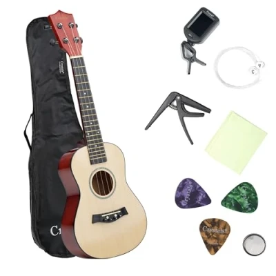 Premium Craftsmanship & Sound Quality – Made from durable natural wood, this ukulele delivers a crystal-clear sound with warm tones, making it ideal for beginners and experienced players. Complete Ukulele Set for Beginners – Felt pick, spare strings, tuner, adjustable strap, capo, and a cleaning cloth, providing everything you need to start playing. Smooth Frets & Comfortable Playability – Features an ultra-smooth fretboard to prevent finger scratches, ensuring a safe and enjoyable experience for both kids and adults. Lightweight & Portable Design – This kids ukulele comes with extra strings and is perfect for ukulele learning, practice, and performances. Its compact size makes it easy to transport. Perfect for Kids & Adults – Whether you're looking for a ukulele for kids, a starter instrument for beginners, or a ukulele for adults, this instrument is an excellent choice for all skill levels. Ideal Gift for Music Lovers – A fantastic present for birthdays, holidays, or special occasions—this kids ukulele is perfect for inspiring creativity and musical passion. Dimensions: 62 x 22 cm (Approx.)