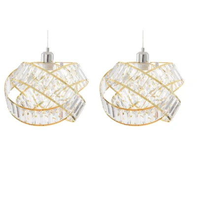 Transform your room with a touch of contemporary sophistication with our eye-catching statement lamp shade. This unique design is crafted with durable plastic panels that mimic the brilliance of crystal, delivering a sleek and glamorous look. The shade features three gracefully interwoven circular shapes, creating an artistic silhouette that instantly becomes the focal point of any space. Available in two colours, soft grey and clear , so you have a choice to pick from, to suit your home style.. Perfect for adding a stylish edge to living rooms, bedrooms, dining areas, or even entryways, this lamp shade is not only visually stunning but also highly functional. It’s designed for easy installation on pendant fittings, but please ensure your pendant wiring is compatible with the weight of the shade, which is approximately 1.04kg.. Product Highlights:. Available in 3 colours: Soft Grey, Clear and Gold. Modern Design: Features overlapping circular shapes with a crystal-like finish for a luxurious yet minimalist aesthetic.. High-Quality Materials: Durable plastic panels provide long-lasting beauty and a lightweight structure.. Size: Measures approximately 31cm in diameter and 23cm in height, making it an ideal fit for standard rooms.. Bulb Compatibility: Suitable for bulbs up to 60W, allowing for ample brightness while maintaining energy efficiency.. Upgrade your lighting and make a bold statement with this contemporary crystal-effect lamp shade. Whether you're refreshing your home décor or looking for a standout piece, this shade offers both style and practicality.