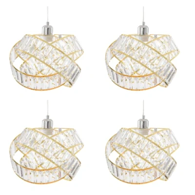 Transform your room with a touch of contemporary sophistication with our eye-catching statement lamp shade. This unique design is crafted with durable plastic panels that mimic the brilliance of crystal, delivering a sleek and glamorous look. The shade features three gracefully interwoven circular shapes, creating an artistic silhouette that instantly becomes the focal point of any space. Available in two colours, soft grey and clear , so you have a choice to pick from, to suit your home style.. Perfect for adding a stylish edge to living rooms, bedrooms, dining areas, or even entryways, this lamp shade is not only visually stunning but also highly functional. It’s designed for easy installation on pendant fittings, but please ensure your pendant wiring is compatible with the weight of the shade, which is approximately 1.04kg.. Product Highlights:. Available in 3 colours: Soft Grey, Clear and Gold. Modern Design: Features overlapping circular shapes with a crystal-like finish for a luxurious yet minimalist aesthetic.. High-Quality Materials: Durable plastic panels provide long-lasting beauty and a lightweight structure.. Size: Measures approximately 31cm in diameter and 23cm in height, making it an ideal fit for standard rooms.. Bulb Compatibility: Suitable for bulbs up to 60W, allowing for ample brightness while maintaining energy efficiency.. Upgrade your lighting and make a bold statement with this contemporary crystal-effect lamp shade. Whether you're refreshing your home décor or looking for a standout piece, this shade offers both style and practicality.