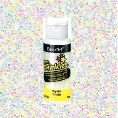 Decoart craft Twinkles are Professional-grade liquid glitte. They are heavily loaded with glitter and each colour contains multiple shades of glitter. It is permanent with excellent coverage. . DCT1-3 CLDA DCT1-2OZ CLDA-DCT1-2OZ MPN DCT1-3