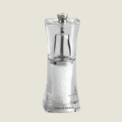 The Crystal Salt & Pepper Mills boast a sleek and fully transparent acrylic design, allowing for a clear view of the contents. These contemporary mills feature high-quality grinding mechanisms, ensuring smooth and consistent seasoning every time. The adjustable grind settings allow users to customise their seasoning preferences, while the durable construction ensures long-lasting performance. Ideal for both home and professional kitchens, these stylish mills offer a perfect balance of elegance and practicality.