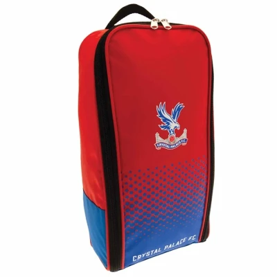 Fade design boot bag featuring a full Crystal Palace FC colour club crest Large double zipped opening for easy access Wipe clean polyester Approx 35cm x 18cm x 12cm With a swing tag Officially Licensed Merchandise
