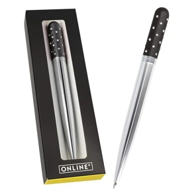 LUXURY DESIGN - The ballpoint pen features sparkling rhinestones that add a touch of glamour and elegance - ideal for discerning lovers of high quality writing instruments. The midi size of 12.6 cm offers high writing comfort, especially for narrow women's hands. Excellent writing quality: the pen guarantees effortless and precise writing thanks to its high-quality G2 standard large capacity refill. Medium line width, black ink colour, indelible and easily replaceable. HIGH QUALITY CRAFTSMANSHIP The writing pen is made of durable metal and features precise workmanship with a smooth twist mechanism that ensures both durability and timeless elegance. ELEGANT GIFT PACKAGING Packaged in a stylish gift box that makes the black pen a perfect present for special occasions such as birthday parties, Christmas, weddings or business gifts. Offline with online – the online brand quality: We at Online are a German family business that has been producing high-quality, innovative, functional and carefully designed stationery since 1991 and has taken writing lovers into the world of creativity.