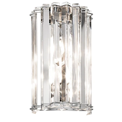 Net LightingThis 2lt wall light features triangular crystal prisms that rest inside Chrome details and stand ready to reflect light in a hundred different ways. Rounded crystals on the bottom reflect the inner light. Also available in this range; Island Chandelier, 6lt Pendant, and 8lt Chandelier.