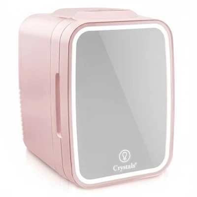 Crystals 4L Mini Fridge with LED Mirror Portable Cooler & Warmer for Bedroom, Skincare, Makeup, Office, Car Travel Beauty Cosmetic Dual Power Plugs (12V DC 220 240V AC) (Pink)