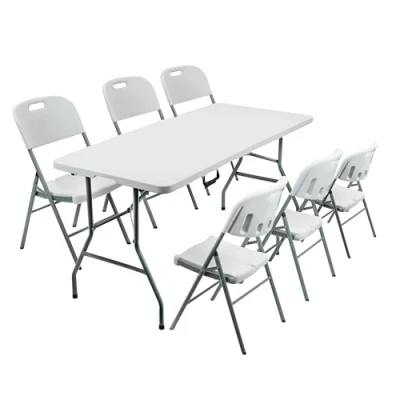 Crystals 6FT White Folding Trestle Table with 6 Camping Chairs Heavy Duty Dining Set for Indoor and Outdoor Events, Suitable Picnics, BBQs, Camping, Parties, Everyday Use