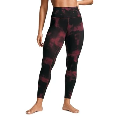 CRZ Yoga Butterlift 25'' Women's High Waisted Sports Leggings Pilates Gym Trousers Buttery Soft Pants Burgundy Tie Dye Flowers 14