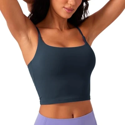 Designed for yoga or lounge. Medium support. Butterlift fabric is as Buttery Soft and flattering as Butterluxe, but a bit more compression and thick. Built in bra with removable pads for flexible movement. U neck & back. Adjustable thin straps for easy adjustment. Cropped camisole tank top that pairs well with high waisted pants.