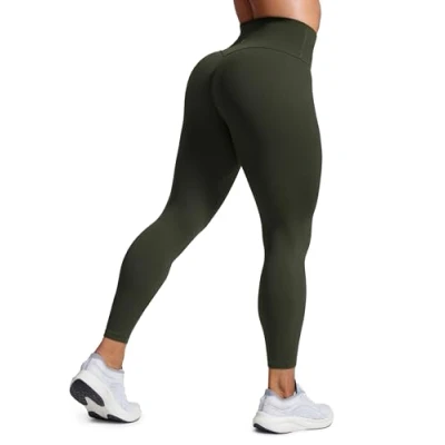 CRZ Yoga Butterlift Women's Scrunch Butt Gym Leggings 25'' No Front Seam Ruched Bums Lifting High Waist Workout Booty Pants Olive Green 10