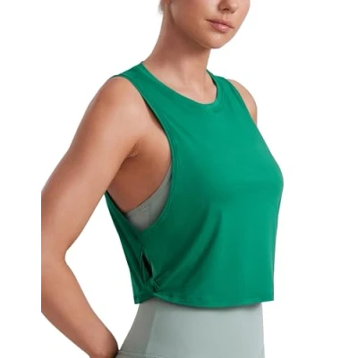 CRZ Yoga Pima Cotton Summer Gym Sleeveless Vest Tops for Women Light Elastic Running Crop Top Loose Crew Neck Shirt Cascadia Green 8