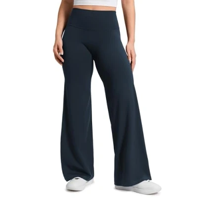 CRZ Yoga Softretch Women's No Front Seam Wide Leg Trousers 28" High Waisted Lounge Casual Soft Comfy Straight Pants True Navy 14