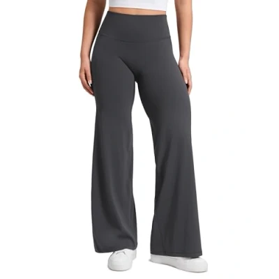 CRZ Yoga Softretch Women's No Front Seam Wide Leg Trousers 30" High Waisted Lounge Casual Soft Comfy Straight Pants Mysterious Grey 10