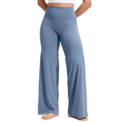 CRZ Yoga Softretch Women's No Front Seam Wide Leg Trousers 30" High Waisted Lounge Casual Soft Comfy Straight Pants Washed Denim 10