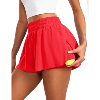 CRZ YOGA Women's 2 in 1 Flowy Running Shorts High Waisted Quick Dry Sport Gym Biker Athletic Tennis Skirts with Pockets Deep Red 6