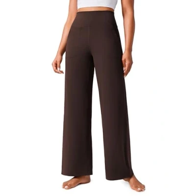 CRZ Yoga Women's Butterlift High Waist Wide Leg Trousers with Pockets 31" Casual Lounge Buttery Soft Pants Hot Fudge Brown 10