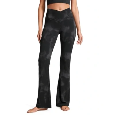 CRZ Yoga Women's Butterluxe Crossover Flared Leggings 31'' High Waist Bootleg Workout Stretch Bootcut Pants Black Tie Dye Flowers 14