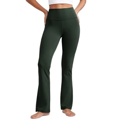 CRZ Yoga Women's Butterluxe Flared Leggings 33.5" High Waist Bootleg Trousers Bootcut Soft Casual Pants with Pockets Legend Green 12