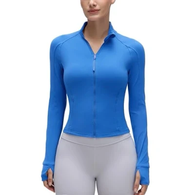 CRZ YOGA Women's Butterluxe Full Zip Running Jacket Pockets Outdoor Sports Cropped Jackets Gym Long Sleeve Top with Thumb Holes Sparkle Blue 14