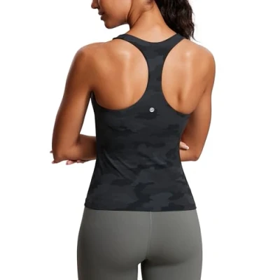 CRZ YOGA Women's Butterluxe Workout Tank Tops with Built in Bra Racerback Athletic Top Longline Sports Dark Grey Camouflage 2 8