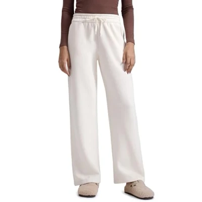 CRZ YOGA Women's Cotton Fleece Lined Sweatpants Straight Leg Casual Lounge Joggers 32" Winter Thermal Comfy Pants with Pockets Milky White 12