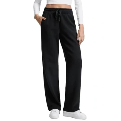 CRZ YOGA Women's Cotton Fleece Lined Sweatpants Straight Leg Casual Lounge Trousers Elastic Waist Comfort Pants with Pockets Black 14