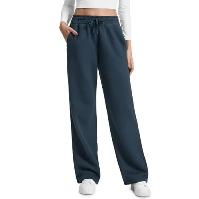 CRZ YOGA Women's Cotton Fleece Lined Sweatpants Straight Leg Casual Lounge Trousers Elastic Waist Comfort Pants with Pockets Ink Blue 6