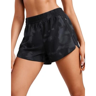 CRZ YOGA Women's High Waist Running Shorts 3'' Mesh Liner Quick Dry Athletic Gym Workout with Zipper Pocket Black Tie Dye Flowers 6